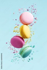 Macaron Dessert. Colorful Macaroons Flying
