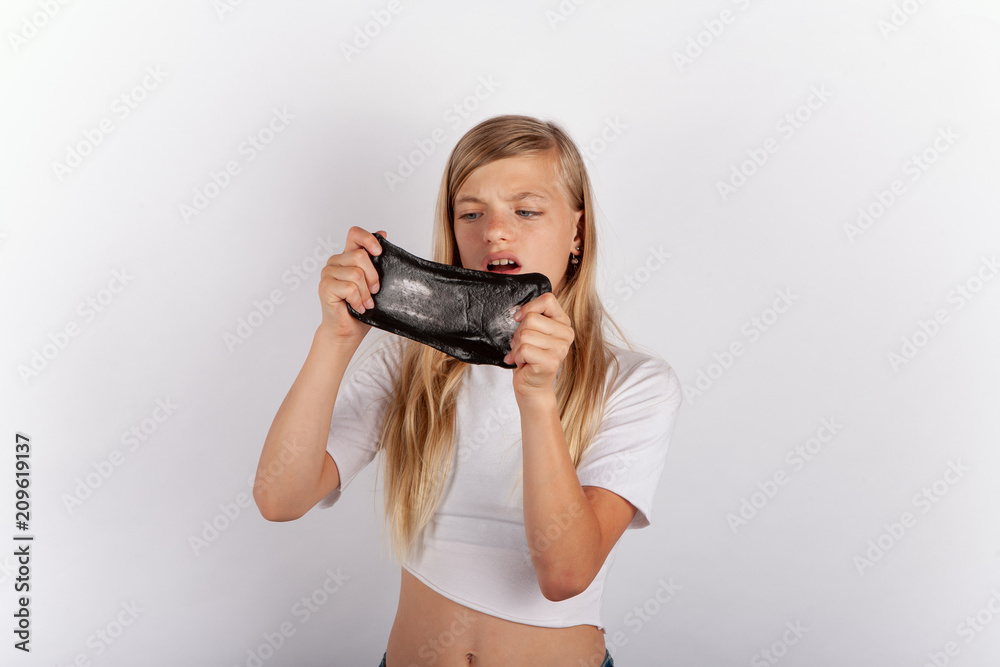 Young girl playing with black slime