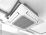 Ceiling type 4 directions air vent system hanging air conditioner unit in a modern office building