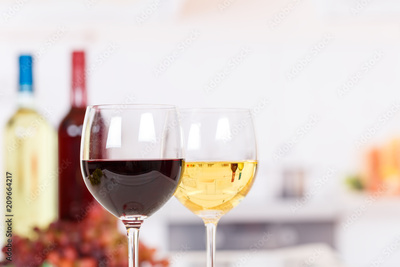 Wein weiß rot Weißwein Rotwein im Glas Weine mit Textfreiraum Copyspace
