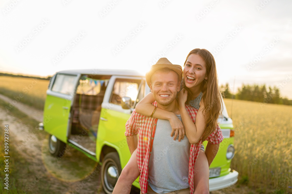 Young couple out on a road trip