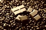 Chocolate pieces and coffee beans