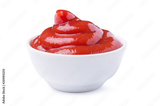 Red tasty ketchup or tomato sauce in bowl isolated on white background