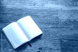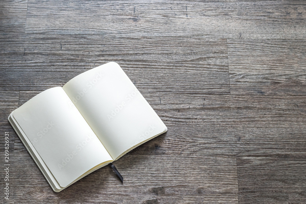 Mock up blank open pocket book, catalog, magazine, brochure note template paper texture in corner on table desk or floor