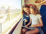 Woman with child traveling by pablic transport
