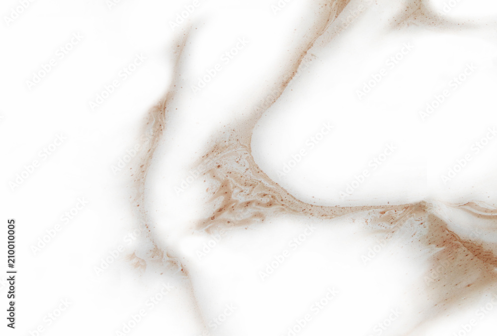 Abstract blurred brown background with elements of spreading brown paint and with effect of marble texture