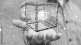Businessman using futuristic cube textured object 3D rendering