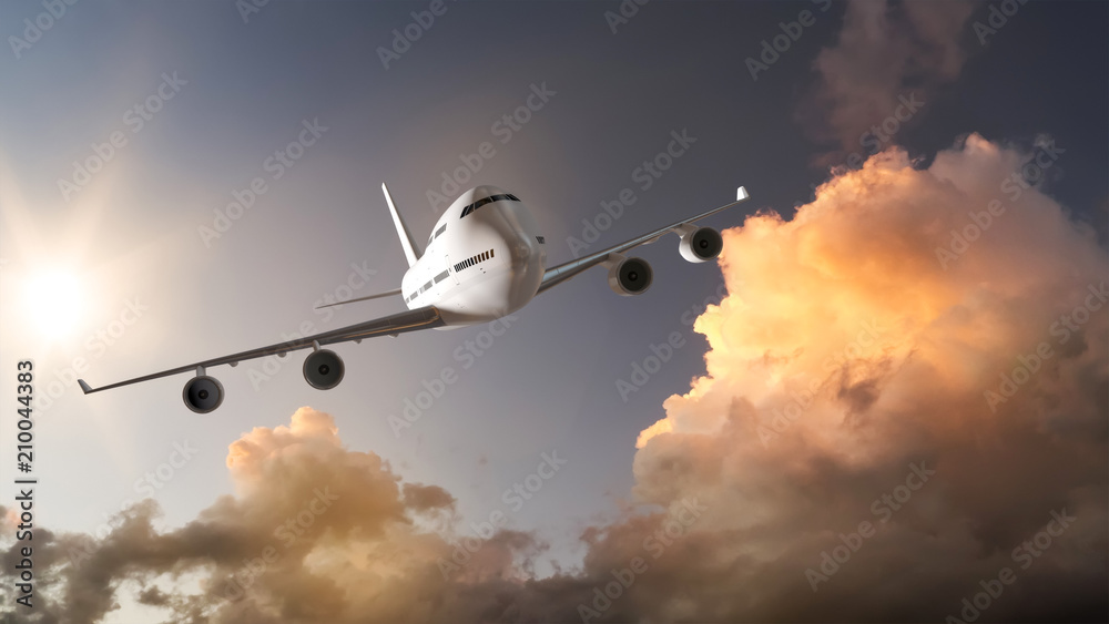 an Airplane and the sunset sky