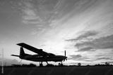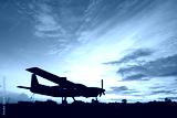 beautiful landscape image with silhouette of old wing airplane at sunset