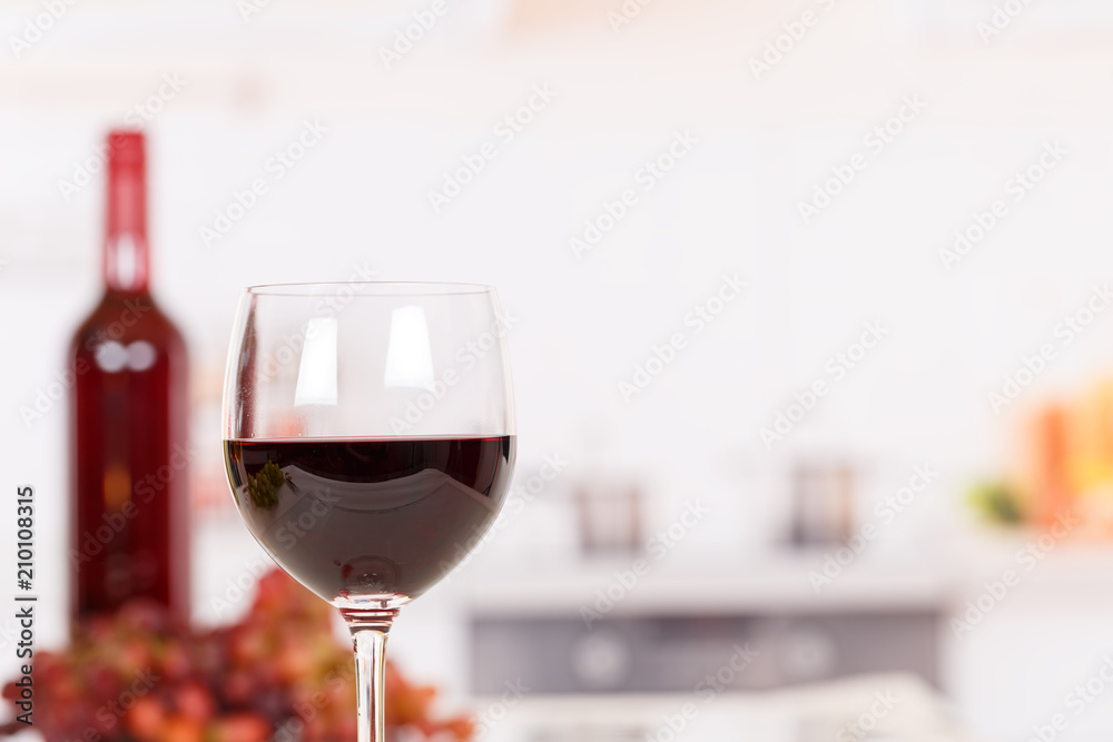 Wein rot Rotwein im Glas mit Textfreiraum Copyspace