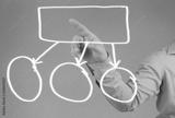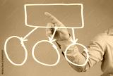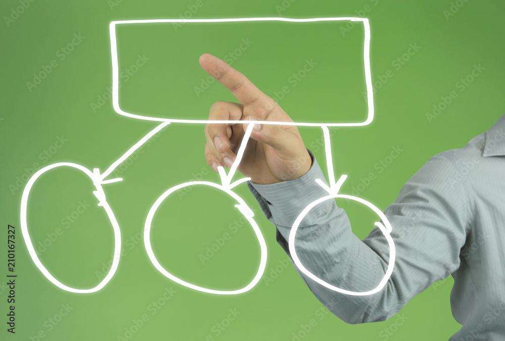 Hand of businessman point to a Geometric shapes symbol on green background.
