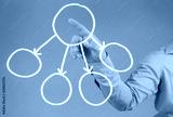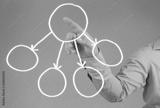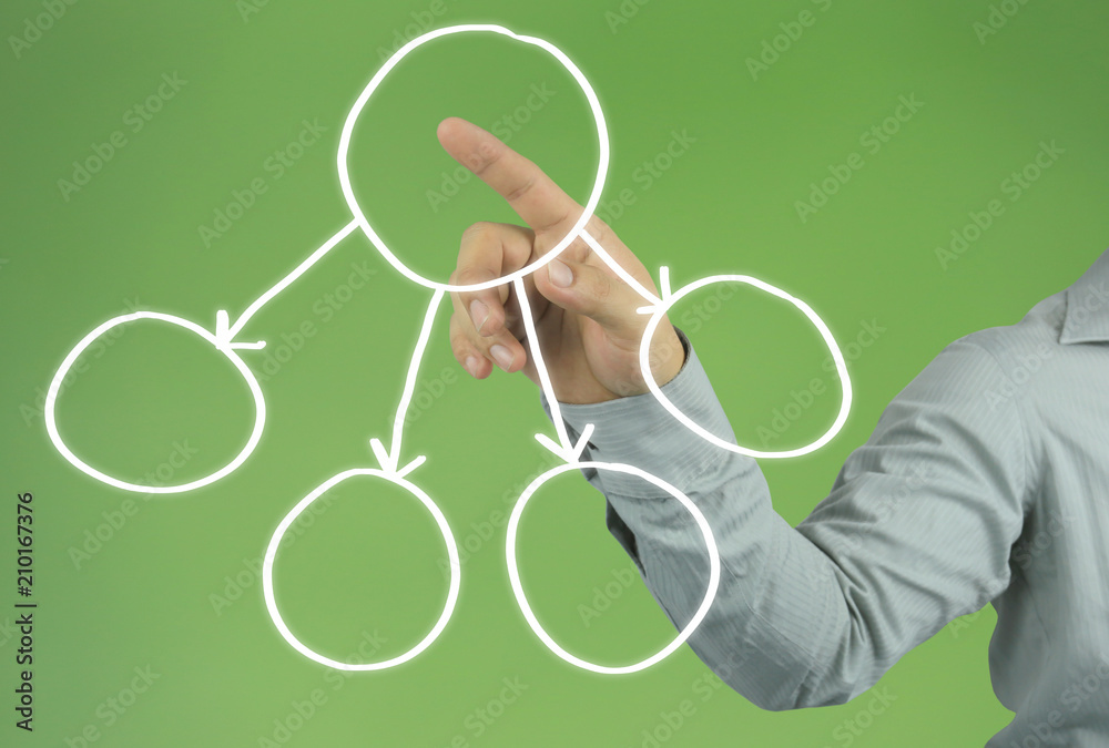 Hand of businessman point to a Geometric shapes symbol on green background.