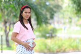 Asian pregnant women in fashion shoot portrait photo in the garden.