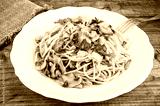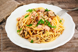 delicious pasta with tonno and mushrooms