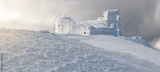 abandoned snow-covered observatory on the mountain Pip Ivan, called White Elephant in the Carpathian mountains.Winter time