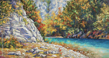 Late autumn on the river Khosta. Mountain landscape of Sochi national park. Painting: canvas, oil. Author: Nikolay Sivenkov.