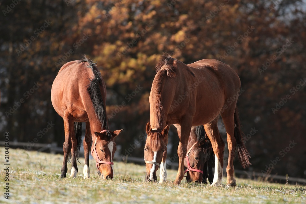 Grazing horses in late autumn