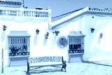 Typical white architecture with white houses and colorful decorations in Estepona town, Costa del Sol, Spain