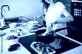 Young blonde woman cooking in the kitchen. Healthy Food. Dieting Concept. Healthy Lifestyle. Cooking At Home. Prepare Food