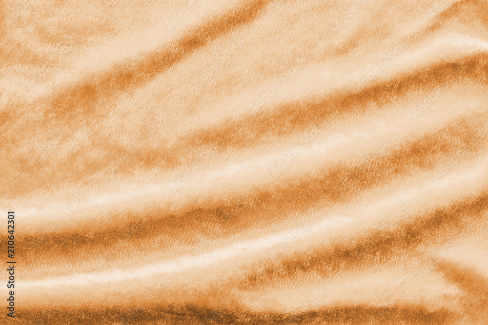 Copper gold velvet background or golden yellow velour flannel texture made of cotton or wool with soft fluffy velvety satin fabric cloth metallic color material