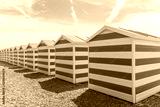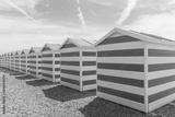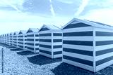 Blue and white striped beach huts at the seaside