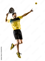 one caucasian man playing Padel tennis player isolated on white background