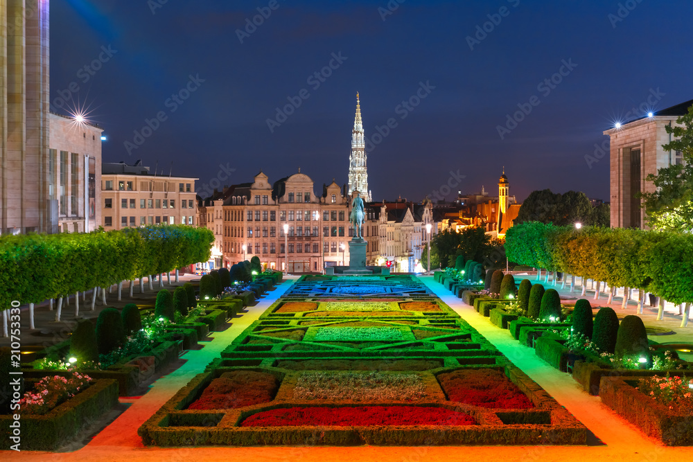 Brussels City Hall and Mont des Arts area at night in Belgium, Brussels.