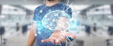 Businessman using digital artificial intelligence icon hologram 3D rendering
