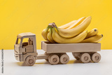 Bunch of bananas in back of toy wooden car.