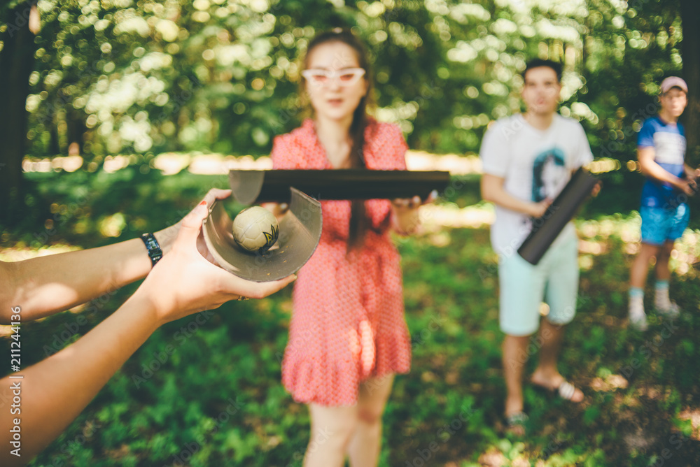 teambuilding exercise in the forest with the ball