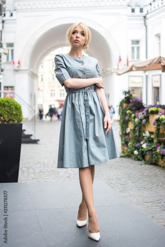 Young woman wearing coat looking away while standing on the city street.