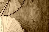 Wooden samples for floor laminate or furniture in home or commercial building.Small color sample boards. Copy space, design