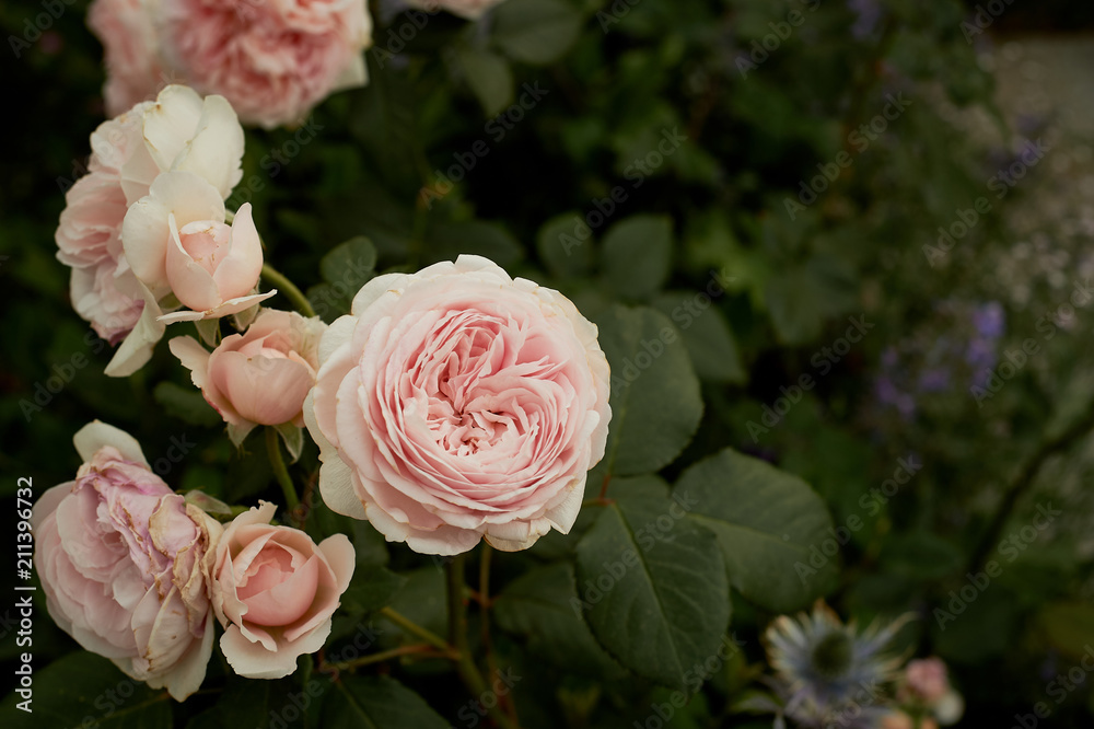 Shrub pink rose in natural conditions in the garden, in the Park