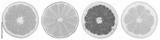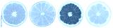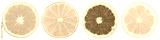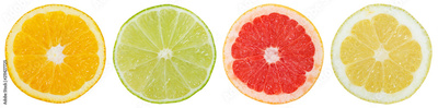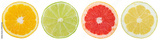 Zitrusfrüchte Südfrüchte Sammlung Orange Zitrone Früchte in einer Reihe geschnitten Hälfte Freisteller freigestellt isoliert