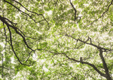 Tree branches Green leaves sunlight Nature abstract background Ecology environment concept
