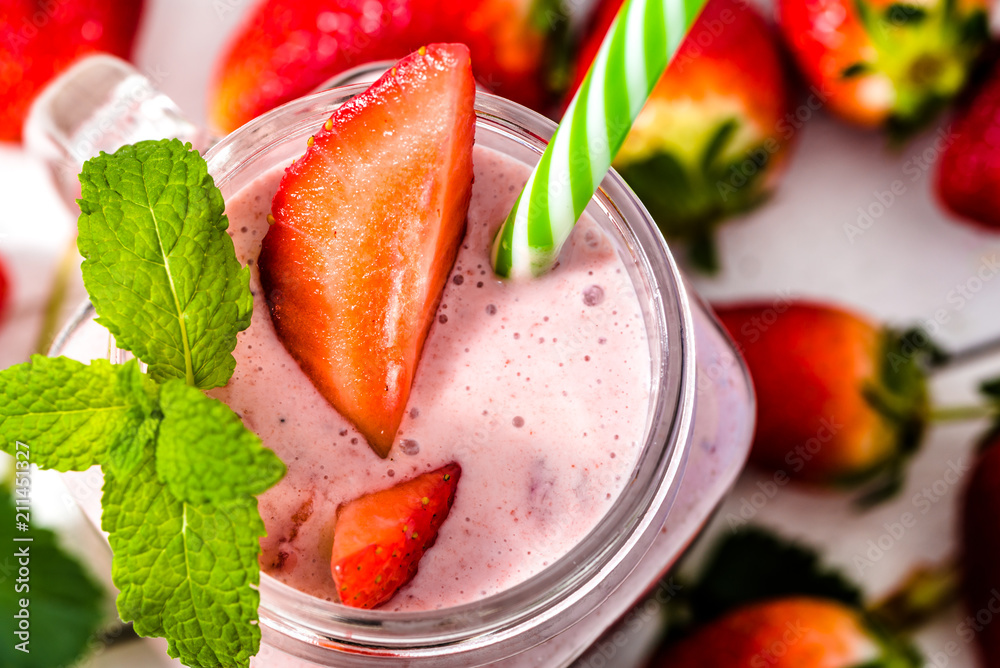 Strawberry smoothie with fruits and yogurt, healthy food concept