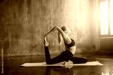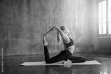 Young woman doing ashtanga yoga practice in a loft studio, surrounded by bright sunlight. Beutiful girl meditating makes herself a healthy body and strengthening the spirit.