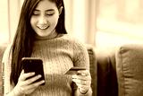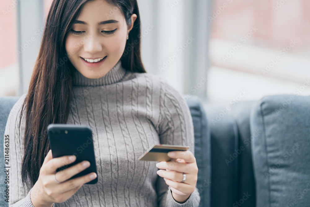 online shopping ideas concept beautiful asian woman enjoy choose and pick product from smartphone shop with happiness and joyful