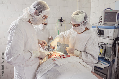Medical team performing an operation on patient's face. Maxillofacial Surgery.