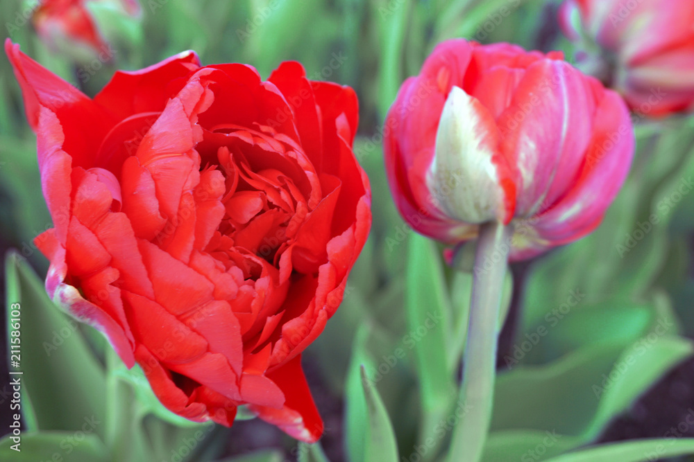 red Tulip on a spring day in a flower bed