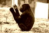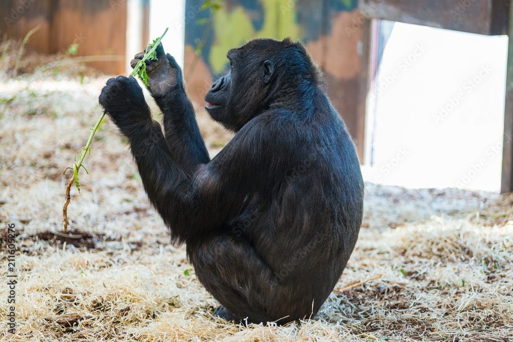 Gorilla eating green leaves
