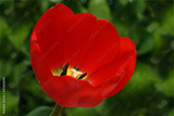 red tulip on green background