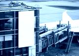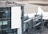 Mock up Banner on building Airport terminal outdoor media Advertising