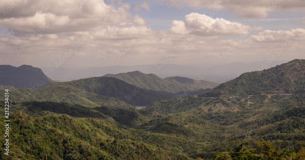 range of green mountain under cloudy blue sky