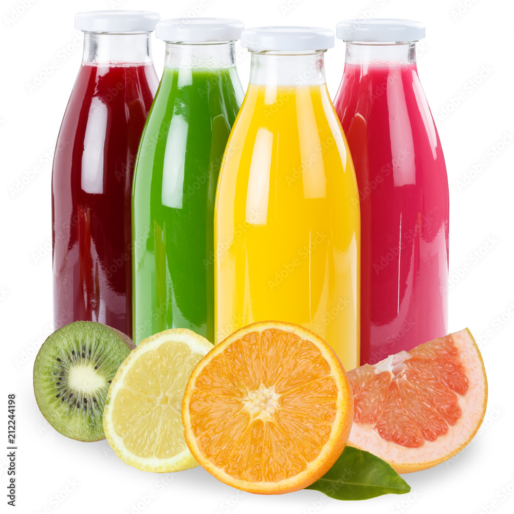 Saft Flasche Fruchtsaft Früchte freigestellt Freisteller