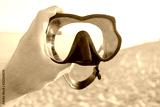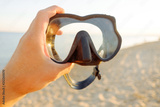 Hand with snorkel mask outdoor.