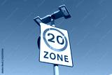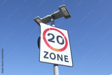 Twenty 20 mph road highway traffic safety sign against blue sky background