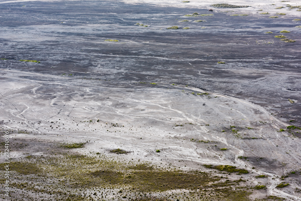 grass, traffic track and trail on barren sand