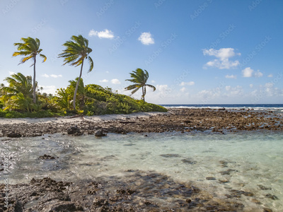reef ring,lagoon and motu on Tahanea atoll, Tuamotus archipelago, French Polynesia, south pacific