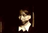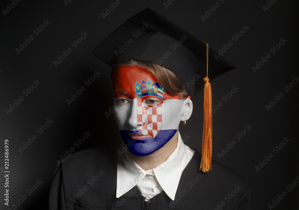 Portrait of Female croatia bachelor with painted Croatia flag in Black mantle and Graduation Cap